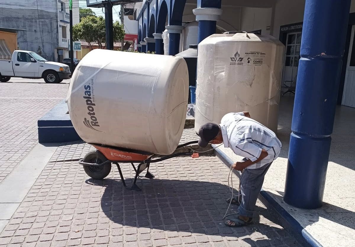 Entrega de tinacos para almacenamiento de agua, beneficiando a 15 familias pinotepenses.